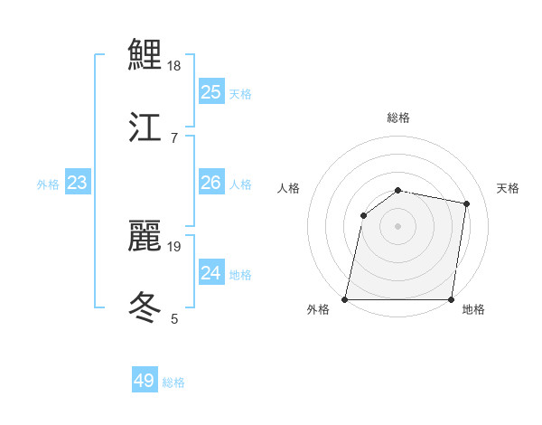 鯉江 麗冬さんの総格は49画の2点!
