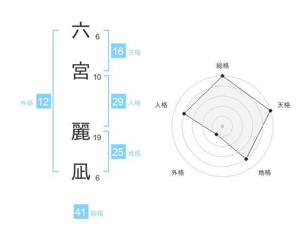 六宮 麗凪さんを姓名の画数から五運を鑑定