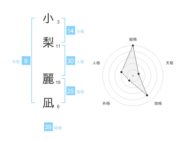 小梨 麗凪さんを姓名の画数から五運を鑑定
