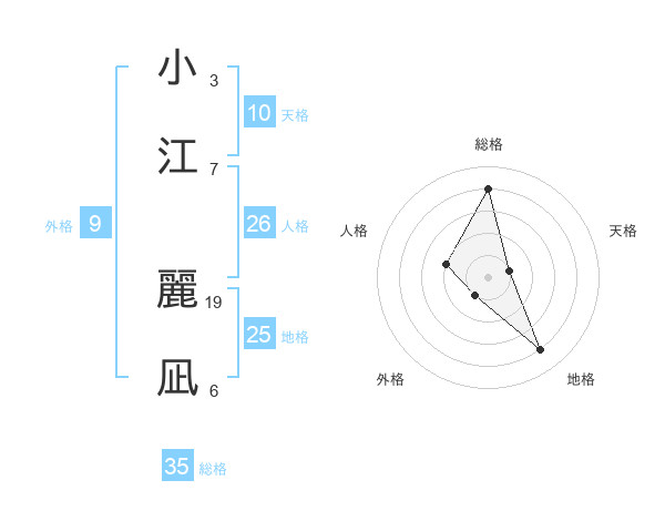 小江 麗凪さんを姓名の画数から五運を鑑定