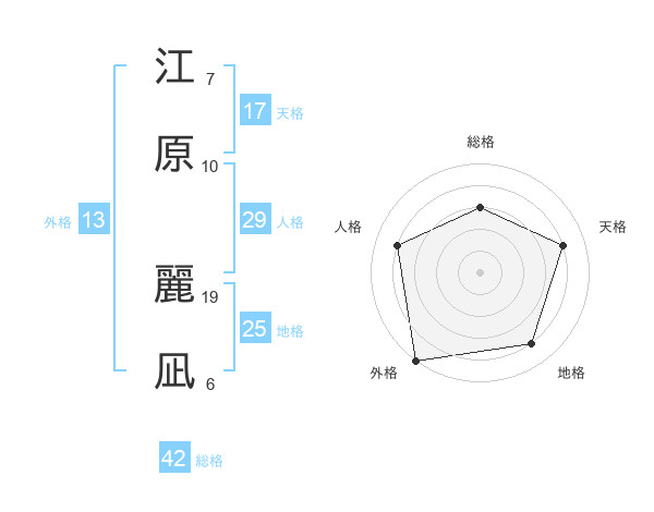 江原 麗凪さんを姓名の画数から五運を鑑定