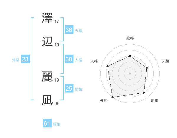 澤辺 麗凪さんの総格は61画の3点!