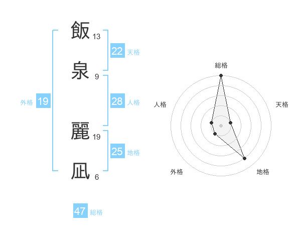 飯泉 麗凪さんの総格は47画の5点!