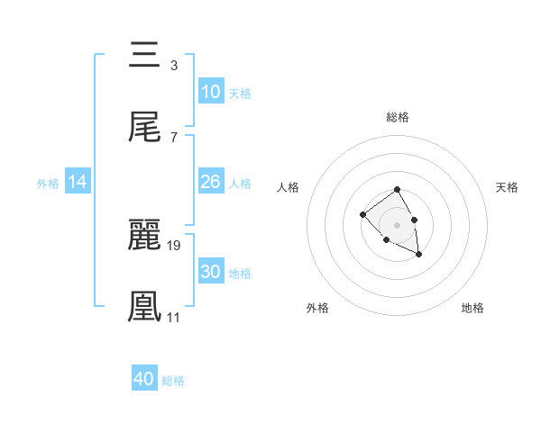 三尾 麗凰さんを姓名の画数から五運を鑑定