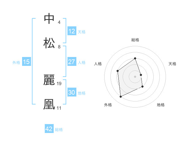 中松 麗凰さんの総格は42画の3点!