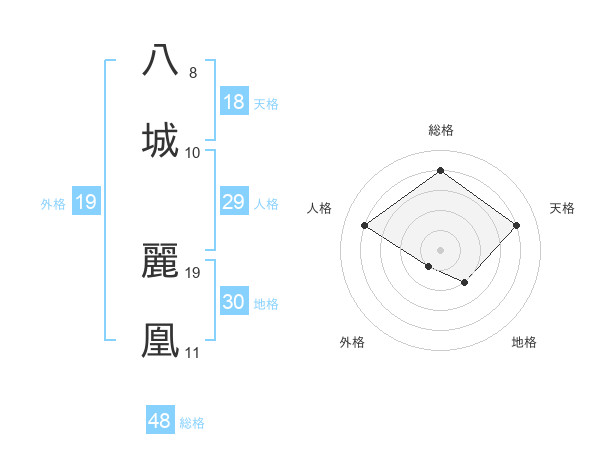 八城 麗凰さんの総格は48画の4点!