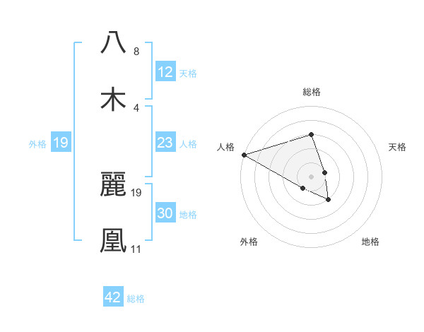 八木 麗凰さんを姓名の画数から五運を鑑定