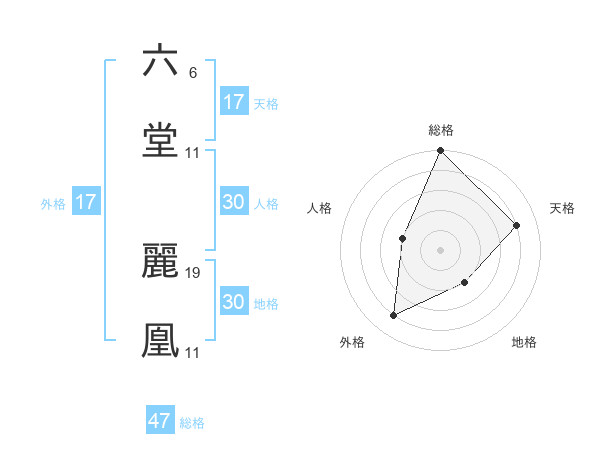 六堂 麗凰さんを姓名の画数から五運を鑑定