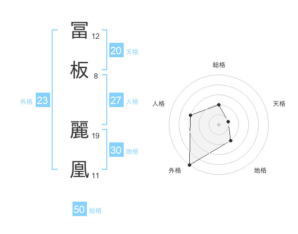 冨板 麗凰さんの総格は50画の2点!