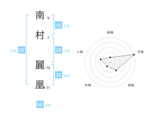 南村 麗凰さんの天格は16画の5点!