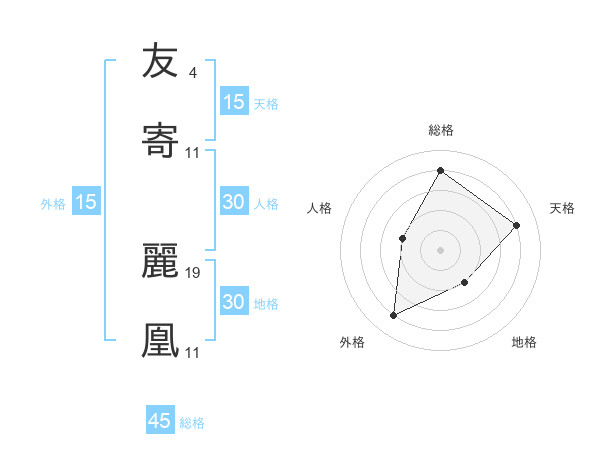 友寄 麗凰さんの天格は15画の4点!