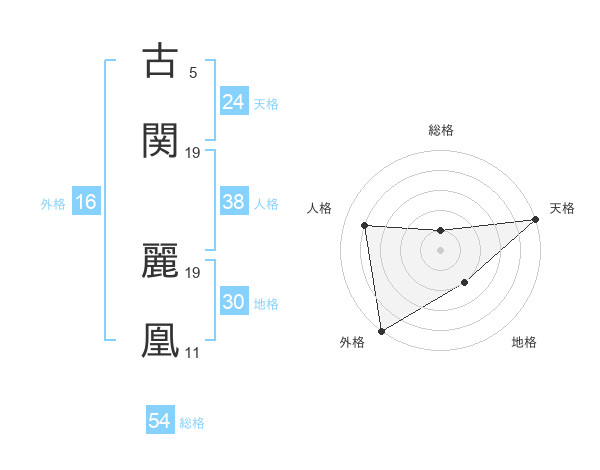 古関 麗凰さんの総格は54画の1点!
