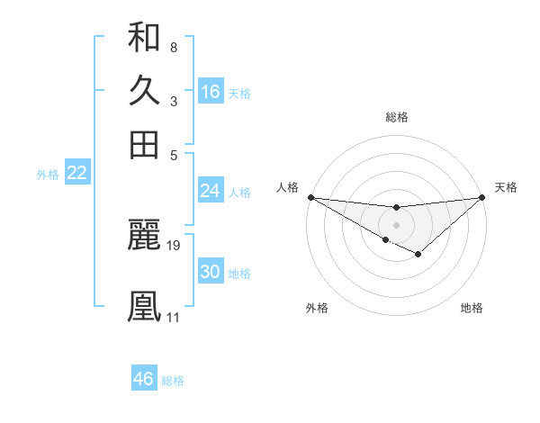 和久田 麗凰さんの天格は16画の5点!