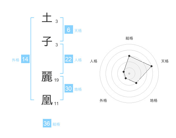 土子 麗凰さんを姓名の画数から五運を鑑定