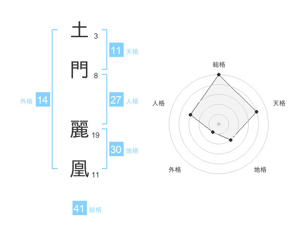 土門 麗凰さんの総格は41画の5点!
