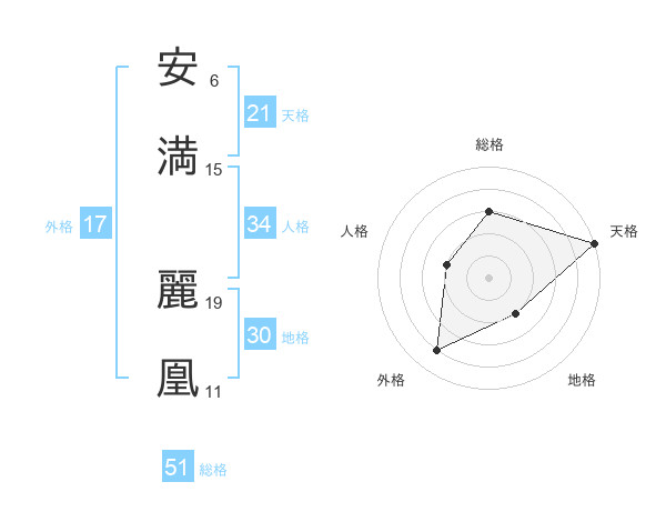安満 麗凰さんを姓名の画数から五運を鑑定
