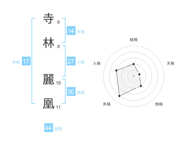 寺林 麗凰さんの総格は44画の2点!