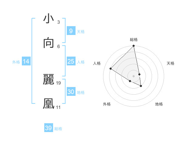 小向 麗凰さんを姓名の画数から五運を鑑定