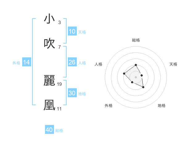 小吹 麗凰さんの総格は40画の2点!