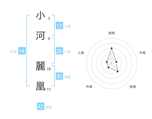 小河 麗凰さんを姓名の画数から五運を鑑定