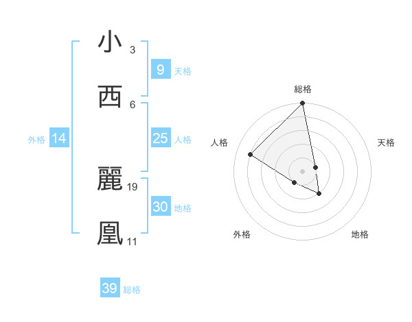 小西 麗凰さんを姓名の画数から五運を鑑定