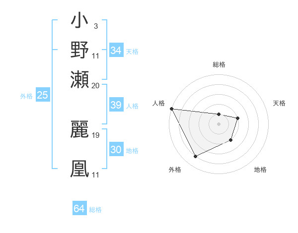 小野瀬 麗凰さんを姓名の画数から五運を鑑定