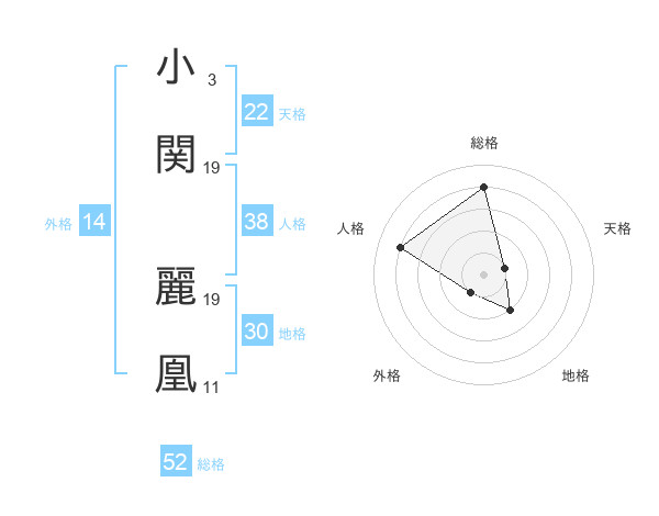 小関 麗凰さんの総格は52画の4点!