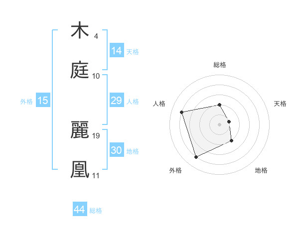 木庭 麗凰さんの外格は15画の4点!