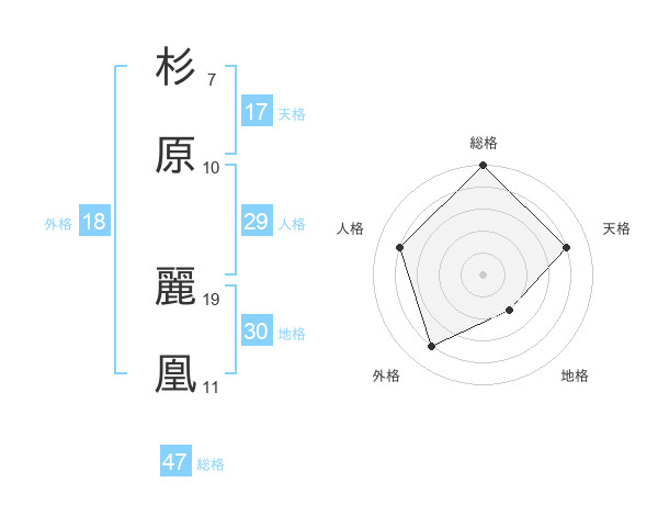 杉原 麗凰さんを姓名の画数から五運を鑑定