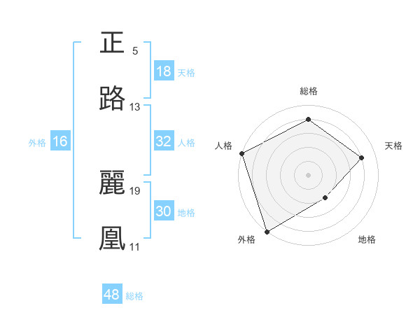 正路 麗凰さんを姓名の画数から五運を鑑定