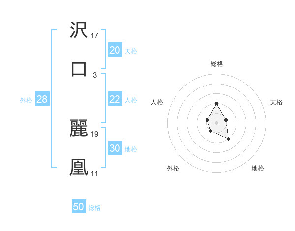 沢口 麗凰さんを姓名の画数から五運を鑑定