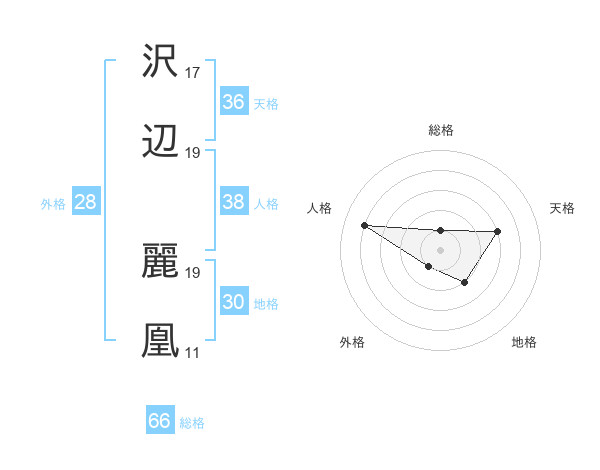 沢辺 麗凰さんの総格は66画の1点!