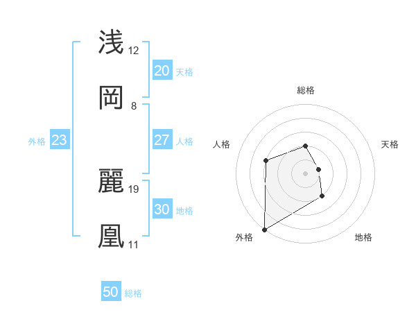 浅岡 麗凰さんの天格は20画の1点!