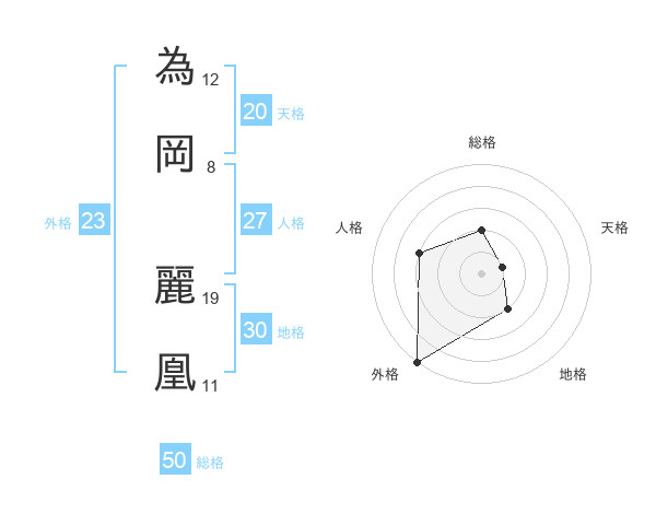 為岡 麗凰さんを姓名の画数から五運を鑑定