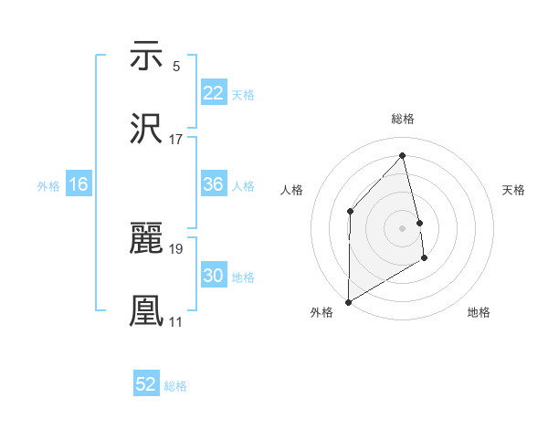 示沢 麗凰さんの総格は52画の4点!