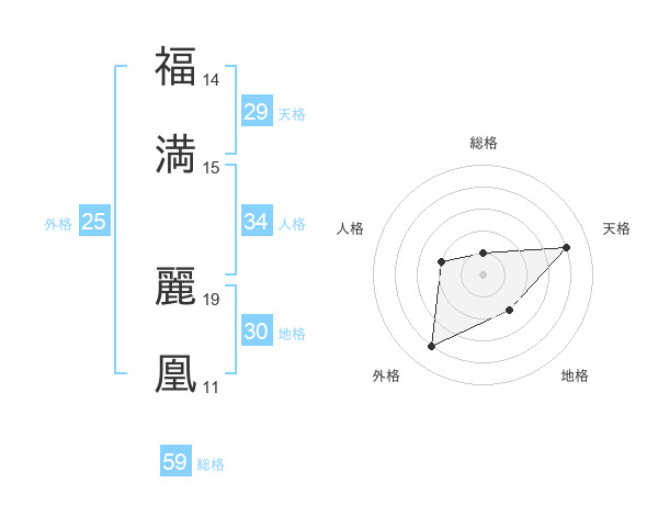福満 麗凰さんの天格は29画の4点!