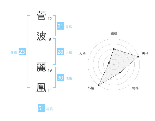 菅波 麗凰さんの総格は51画の3点!
