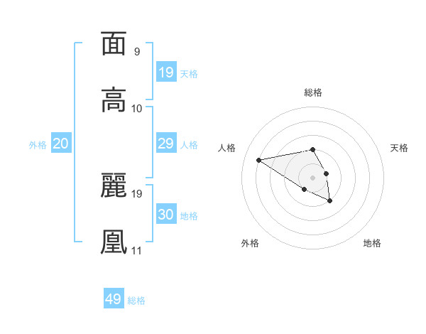 面高 麗凰さんの総格は49画の2点!