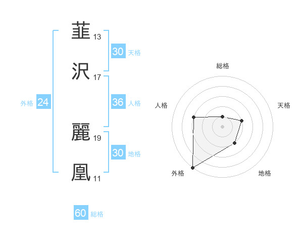 韮沢 麗凰さんの総格は60画の1点!