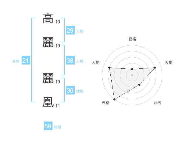 高麗 麗凰さんを姓名の画数から五運を鑑定