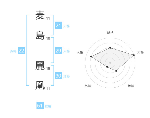 麦島 麗凰さんの総格は51画の3点!