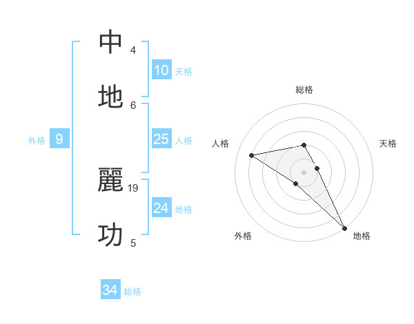 中地 麗功さんの総格は34画の2点!