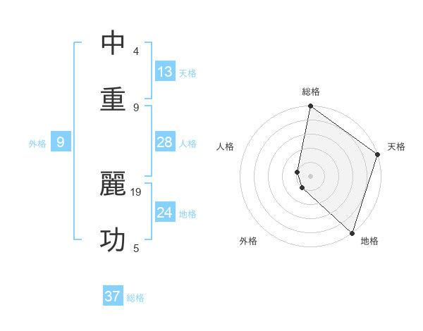 中重 麗功さんの総格は37画の5点!