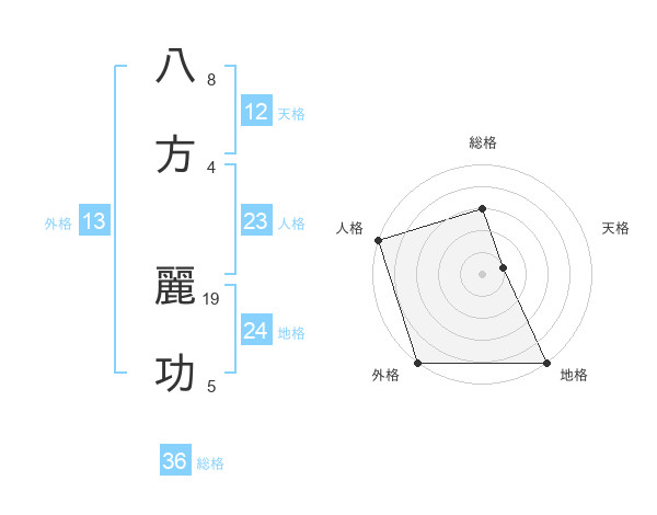 八方 麗功さんの天格は12画の1点!