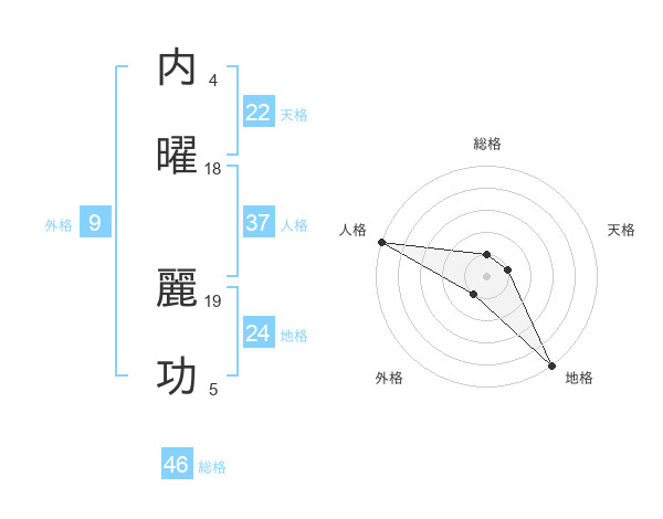 内曜 麗功さんを姓名の画数から五運を鑑定