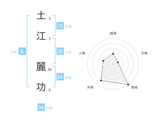 土江 麗功さんの総格は34画の2点!