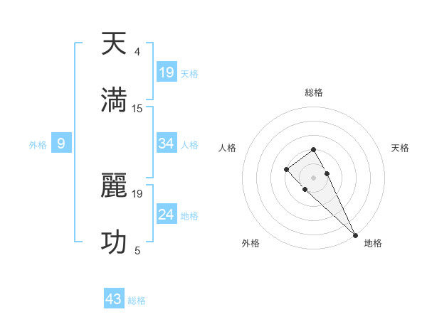 天満 麗功さんの総格は43画の2点!