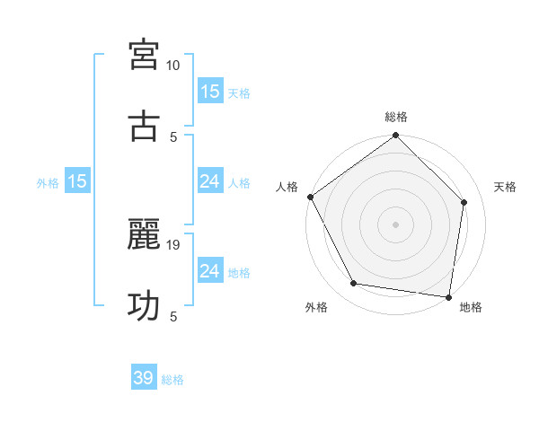 宮古 麗功さんの総格は39画の5点!
