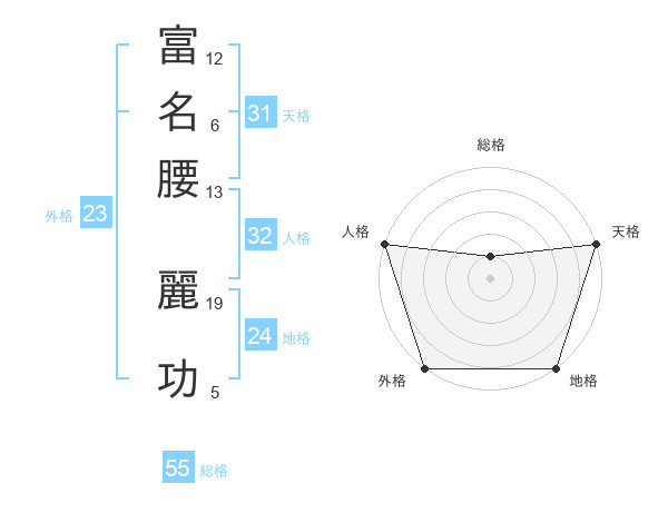 富名腰 麗功さんの総格は55画の1点!