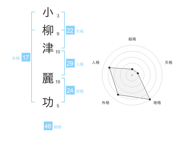 小柳津 麗功さんの総格は46画の1点!